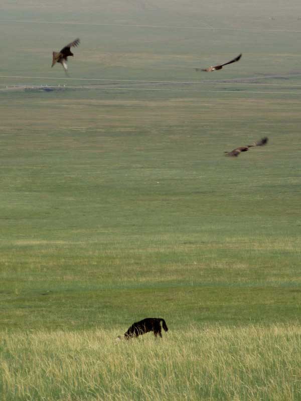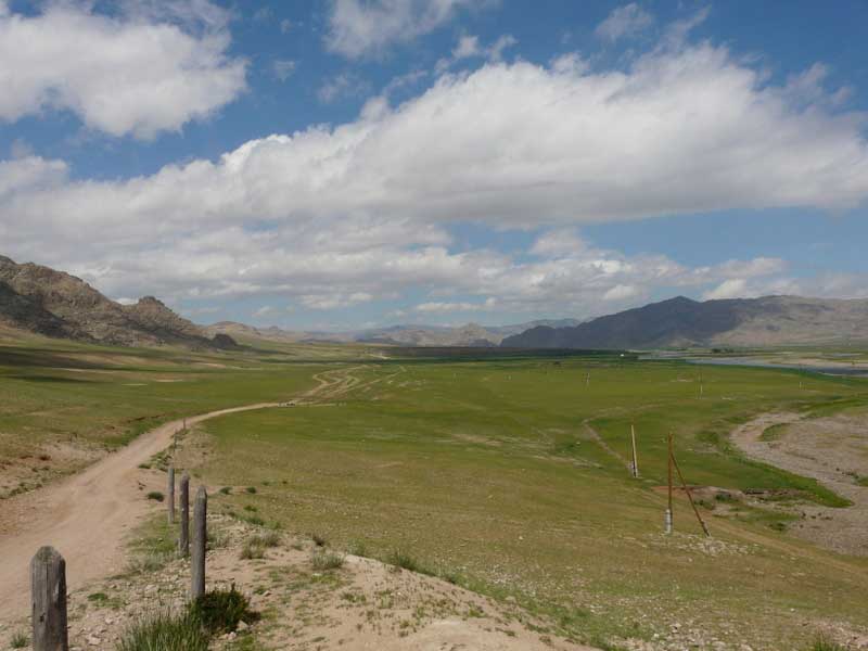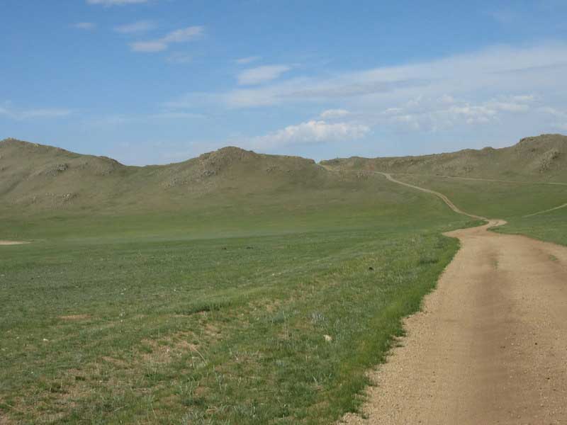 Passage devant le monastère de Shank avant d'arriver à Kharkhorin. Cette ville fut au centre de l'empire mongol de Gengis Khan au XIII ème siècle. Seules deux des quatre statues de tortue en pierre indiquant les limites de la ville subsistent aujourd'hui.