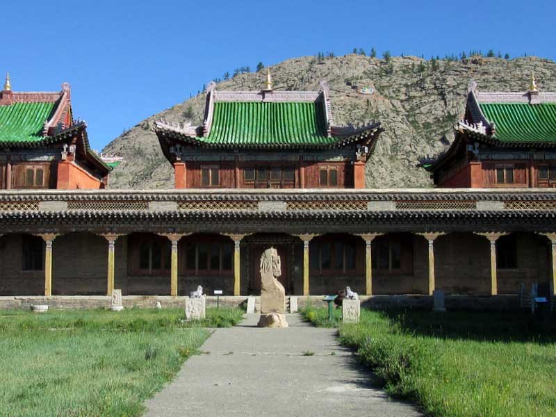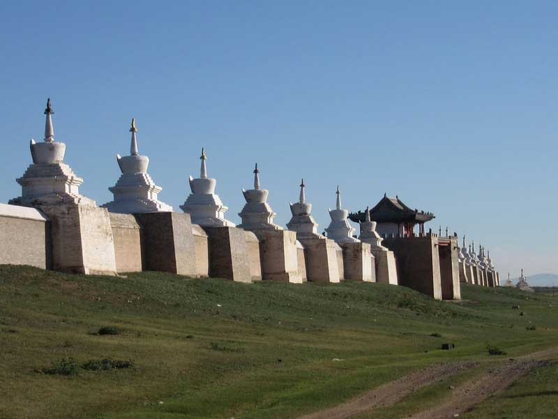 De son passé, kharkhorin ne garde que le monastère Erdene Zuu Khiid. Fondé en 1588, ce fut le premier monastère boudhique de Mongolie. A son apogée jusque 1000 moines y vivaient. Il comptait alors entre 60 et 100 temples et 300 yourtes enclos par d'immenses murailles le long des quelles se répartissaient 108 stupas. Seuls 3 temples subsistent aujourd'hui.