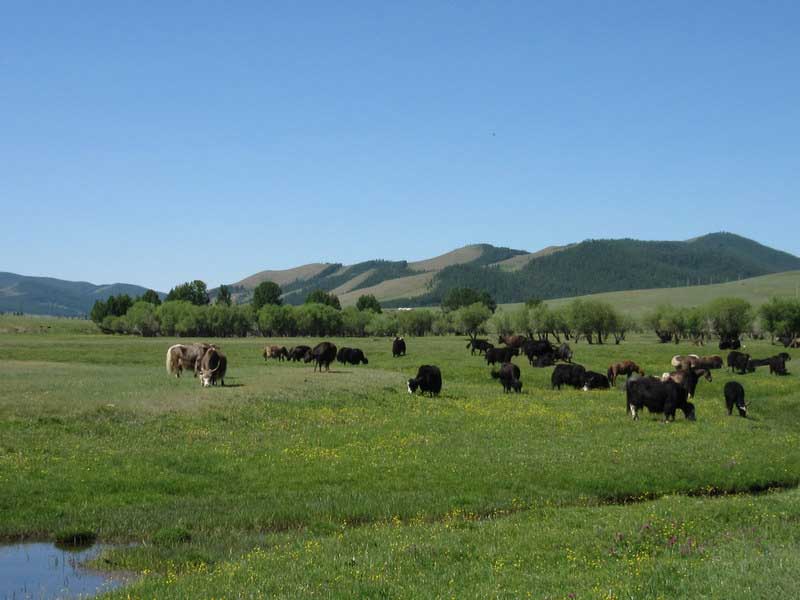 Nous sommes entre 1500 et 2000m, la température est d'environ 8°, des yaks viennent grossir les troupeaux