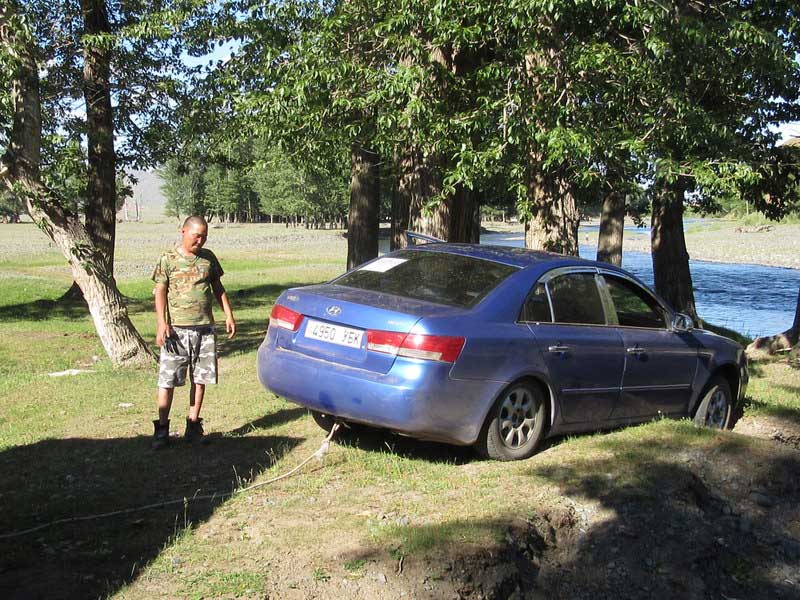Un mauvais choix du chauffeur entre différentes pistes nous fait arriver, après plusieurs km, dans un marécage...Il ne reste plus qu'à prendre une traverse.