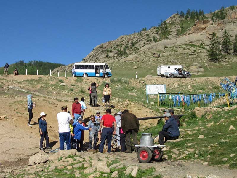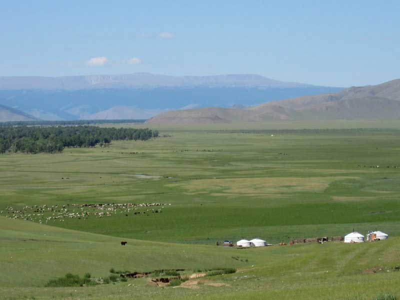 Dans un paysage verdoyant nous arrivons aux sources chaudes de Tsenkher: ensemble de camps de yourtes possédant chacun leur