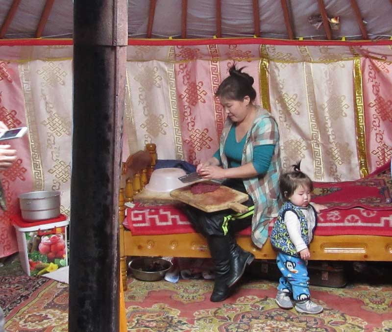 Halte pour observer la tonte des moutons et la confection de xyyшyyp (chausson frit à la viande de mouton).