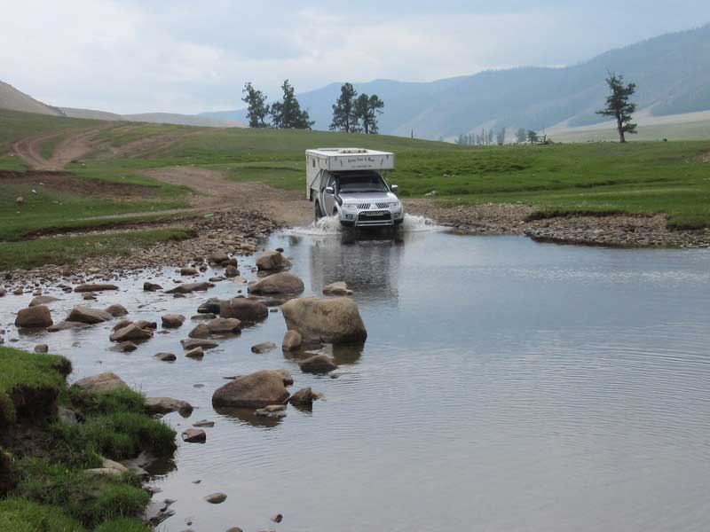 Nous roulons maintenant plein nord. Il n'a pratiquement pas eu de pluie, les gués se passent donc sans difficulté.