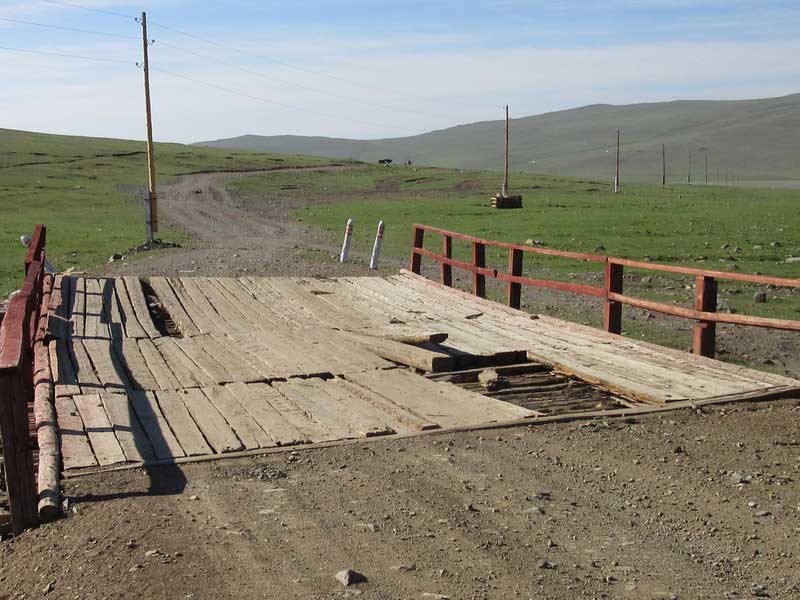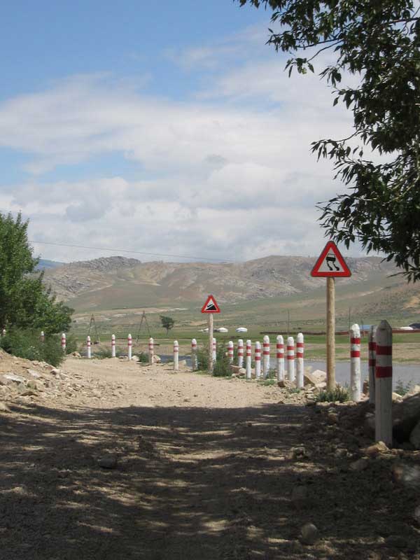 La piste présente parfois des surprises: panneaux de signalisation, pont à la solidité douteuse.