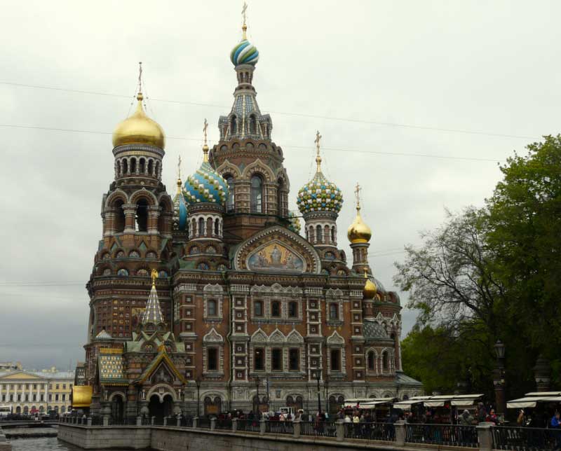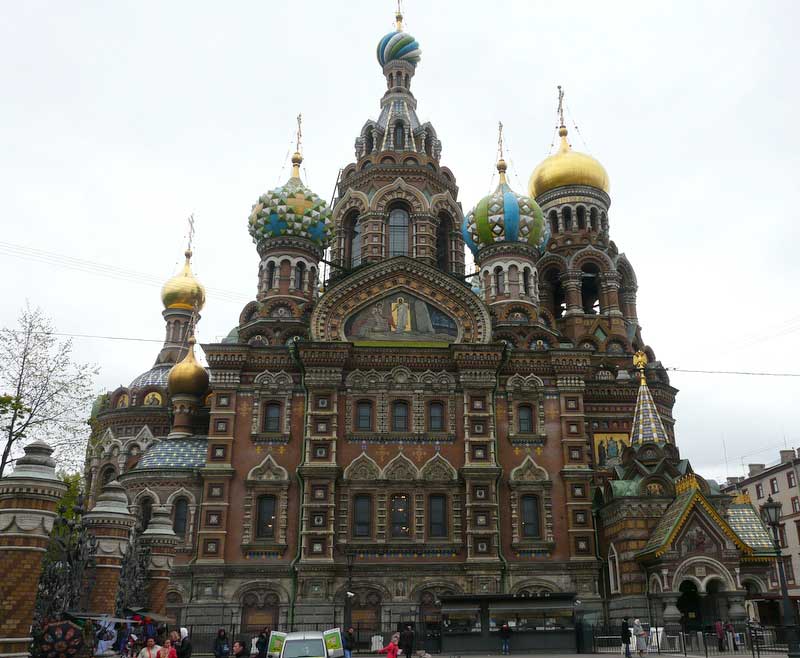 Pour arriver à La Cathédrale du Sang Versé, édifiée sur le lieu de l'assassinat d'Alexandre II. Remarquable par ses dômes multicolores et ses murs recouverts par 7000m2 de mosaïque.