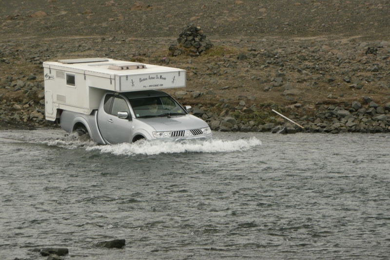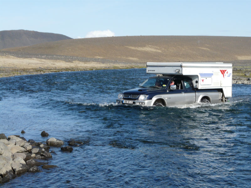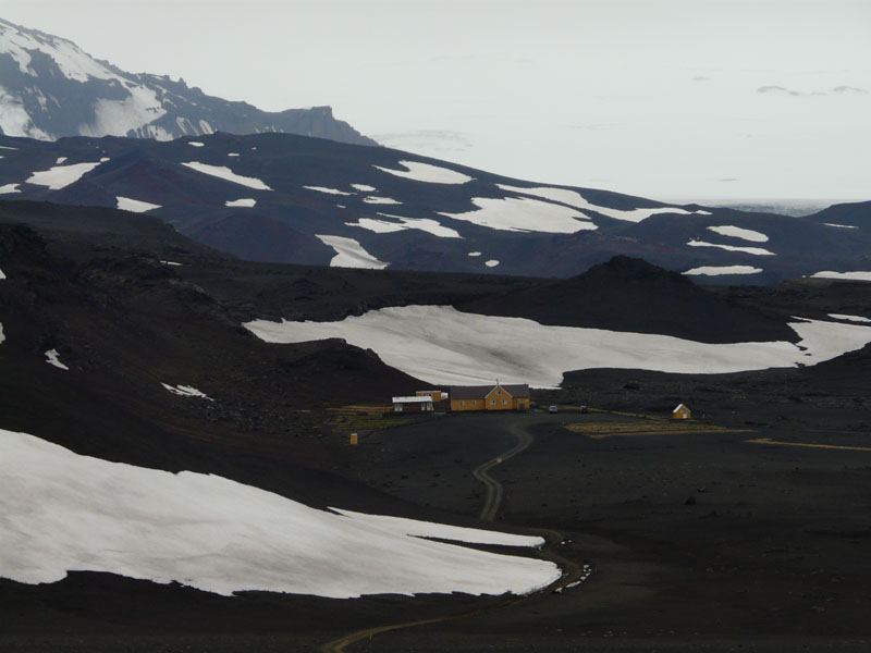 Après le passage de quelques gués nous arrivons à Askja où la neige nous empêchera d'aller au bord de la Caldeira. Nous continuons jusqu'au refuge du Kverkfjöll où nous camperons après être aller voir la calotte glaciaire de très près.