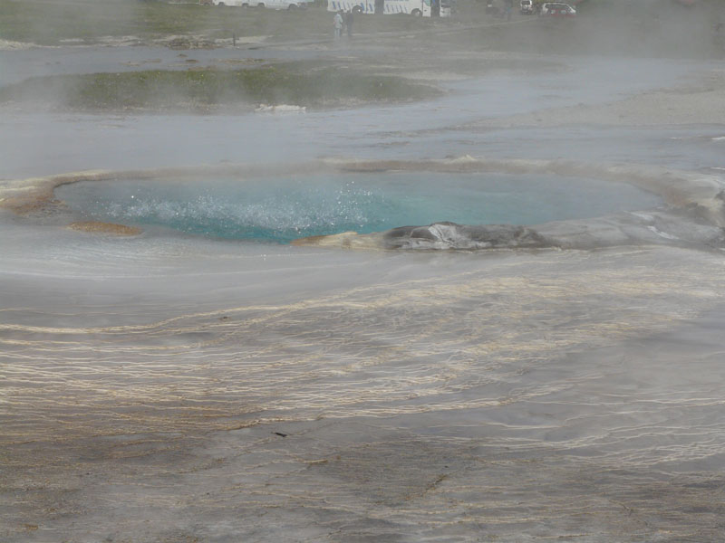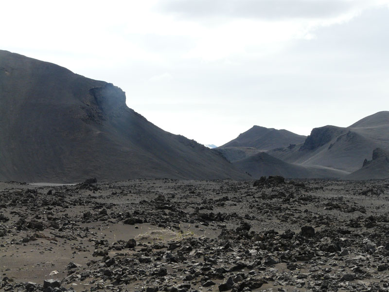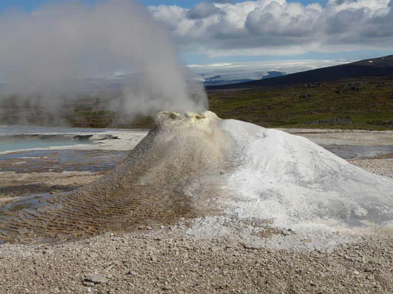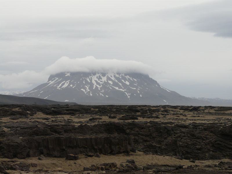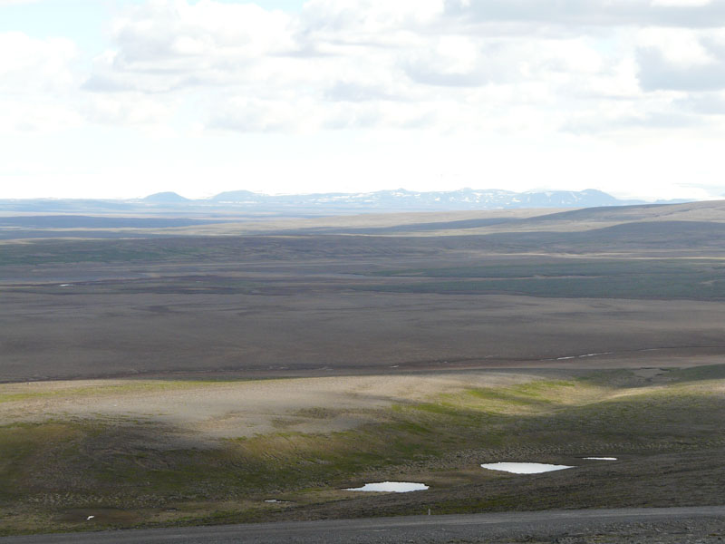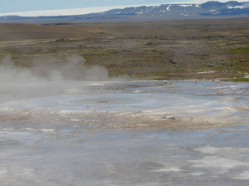 Arrivés à Blönduós nous empruntons la route 35 qui traverse une zone désertique de cailloux et de cendres, pique-nique près du lac artificiel de Blöndulón, puis arrivée à Hveravellir zone géothermique très active, située entre les calottes glaciaires de Langjökull et Hofsjökull.