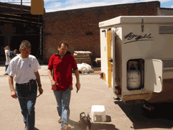3 jours d'attente pour récupérer nos véhicules. Papiers soit-disant mal faits, mais 1000$US pouvaient tout arranger. Devant notre refus, le transitaire trouve une solution. Après de nombreux aller-retour entre les différents bureaux , Marie-Claude et Michel , accompagnés de Ruben qui nous a aidé dans nos démarches, peuvent enfin rentrer dans le port. Vers 17 h nos voitures apparaissent enfin . ![]() Batteries: - Un véhicule refuse de démarrer à la sortie des conteneurs. Un câble adapté a eu raison de sa somnolence. -Les deux batteries de l'autre cellule lâchent: plus d'électricité ni de chauffage(0°). De l'eau dans le gaz: - Une matinée passée à raccorder une bonbonne argentine avec un réseau français.