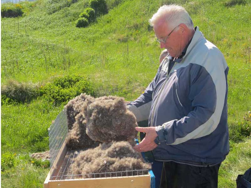 Puis quelques jours avant notre départ, nous assistons par hasard au nettoyage du précieux duvet de l'Eider. A l'époque de la nidification, la femelle arrache une partie de son duvet ventrale pour en garnir le nid. C'est une partie de ce duvet que les cueilleurs prélèvent dans les nids avant l'éclosion des petits. L'Islande exporte 70% du duvet mondial, soit 3 tonnes par an.