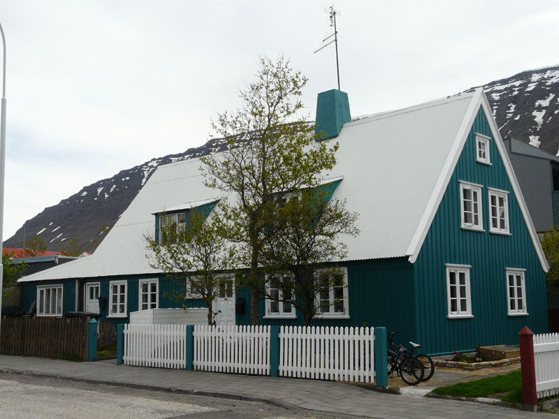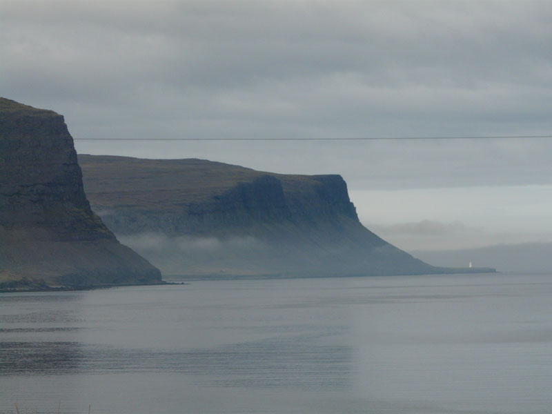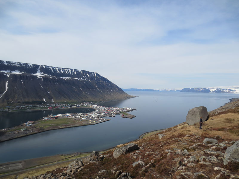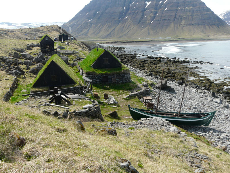 Arrivée à Isafjörður, ville la plus importante des fjords de l'ouest, une courte promenade vite stoppée par la neige nous permettra de surplomber le fjord et le terrain d'aviation avec dans le lointain une vue sur le Hornstrandir. A Bolungarvík nous flanons près de ces cabanes de pêche recouvertes de gazon qui abritent le musée maritime Osvör.