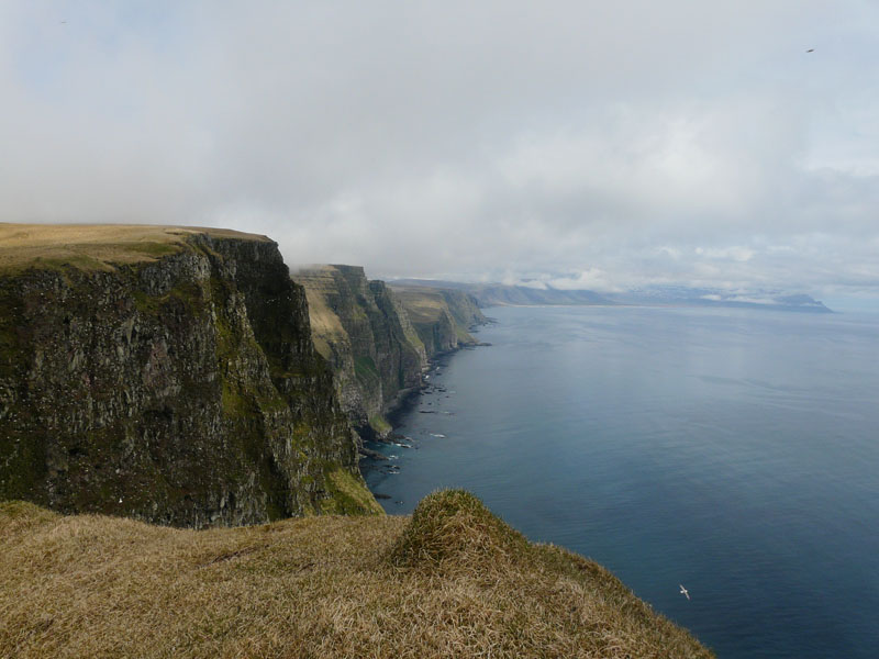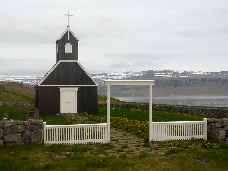 Nous continuons notre voyage à travers des paysages magnifiques pour arriver aux falaises de Latrabjarg, longeant le littoral sur 12km et mesurant entre 40 m et 400 m, ces falaises sont fascinantes pour les oiseaux qu'elles abritent. A l'est de ces falaises s'étend la belle plage de Rauðisandur, au sable rougeâtre, bordée par une immense lagune, c'est là que nous bivouaquerons près de la petite église.