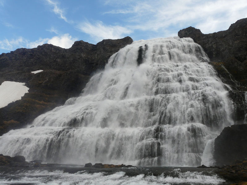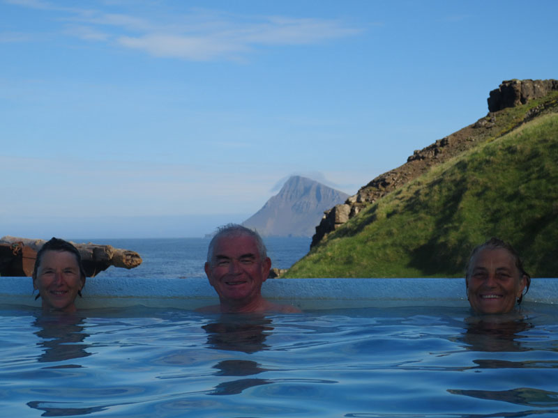 Pour Michel, relaxation dans la source chaude de Reykjafjarðalau, bassin aménagé en pleine nature avec vue sur le fjord. La cascade de Dynjandi est particulièrement spectaculaire avec ses 100m de haut et ses 60m de large en bas.
