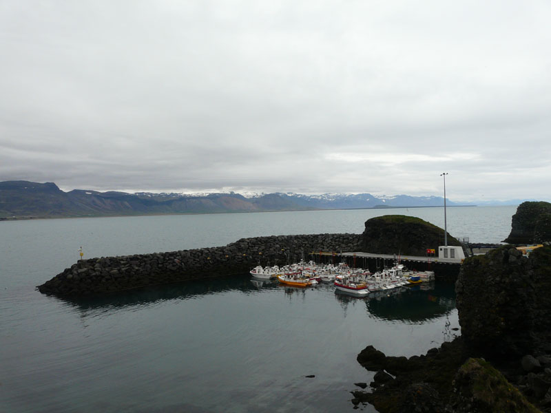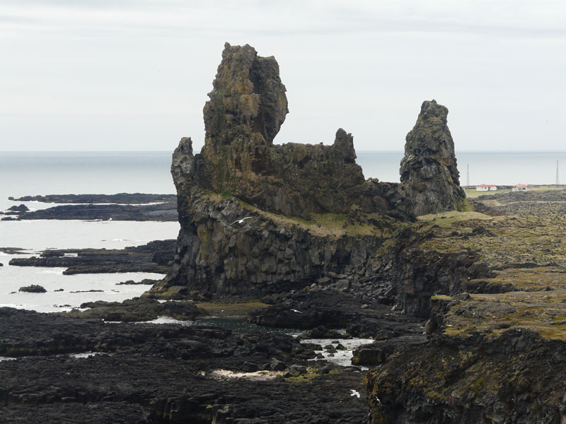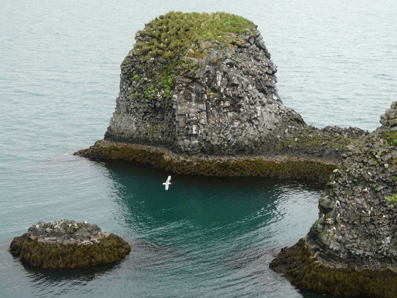 Arnarstapi et son joli petit port, puis cette formation rocheuse qui ressemble à un château fort, mais qui serait plus probablement le reste d'un cratère.