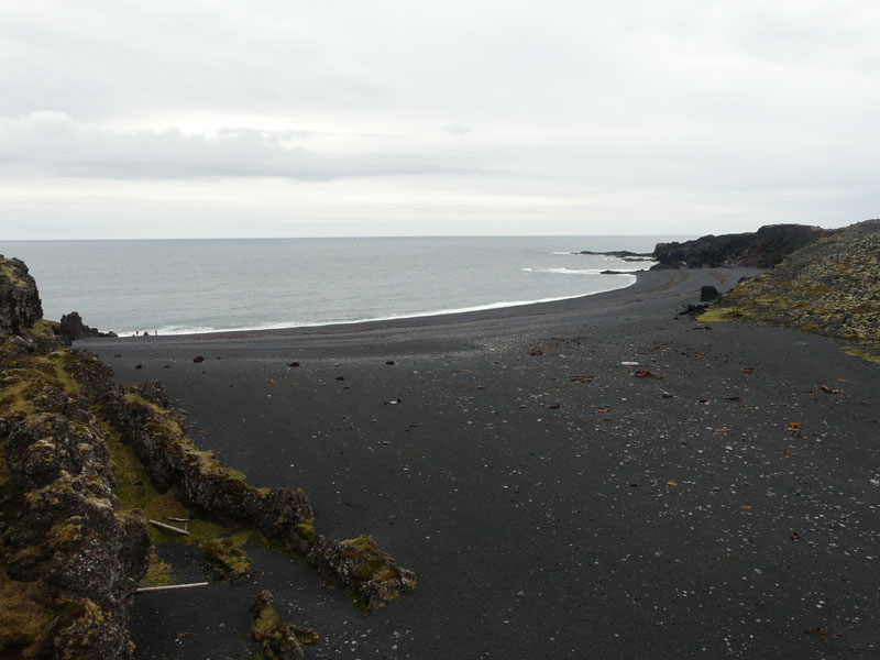 La plage de sable noir de Dritvik jonchée de morceaux de ferrailles vestiges d'un chalutier anglais échoué en 1948, et Djúpalónssandur sur laquelle on trouve les pierres étalons qui autrefois servaient aux marins pour mesurer leur force: Amloði("incapable", 23kg), Hálfdrættingur ("faible", 54kg), Hálfsterkur ("mi-fort", 100kg) et Fullsterker ("complètement-fort", 154kg).