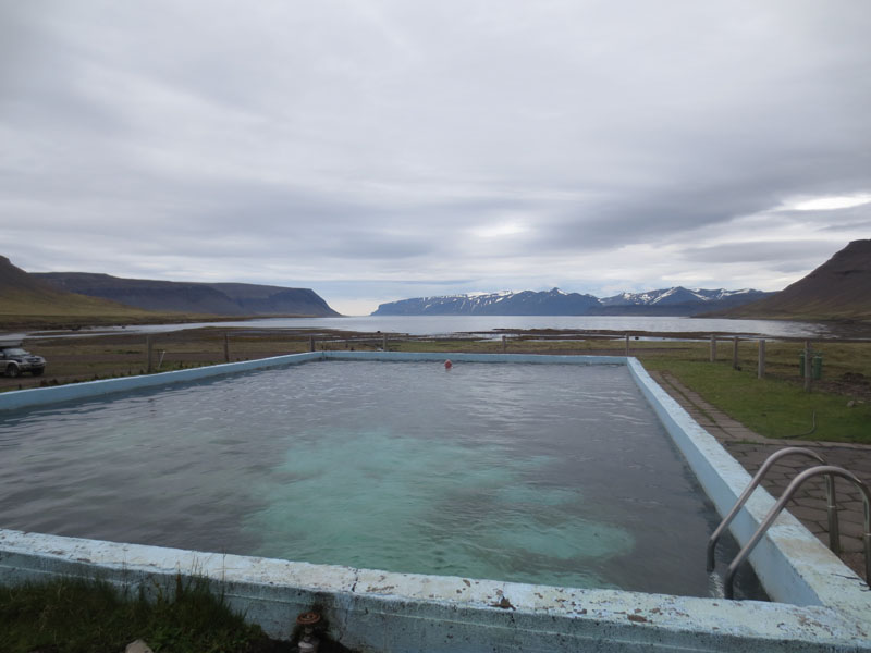 Après de nombreux méandres, le bout de la route et la source d'eau chaude de Krossnes dont nous profiterons avec plaisir. Endroit paisible où nous passerons la nuit.