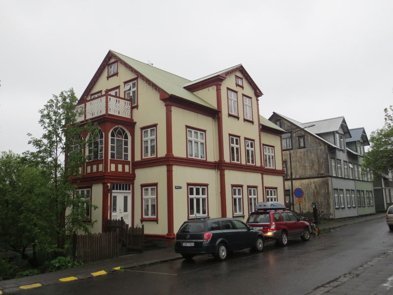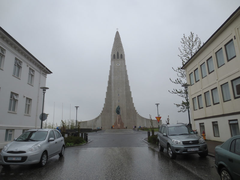 Pour notre arrivée à Reykjavik la pluie est au rendez-vous, cependant elle ne nous empêchera pas de déambuler dans les rues colorées de la capitale. Les vieilles maisons du XVIIIs réalisées pour la plupart en bois flotté (venu de Sibérie ou d'Amérique du sud ) et recouvertes de tôles ondulées ne sont pas dénuées de charme sans oublier la Hallgrimskirkja construction emblèmatique de la ville .