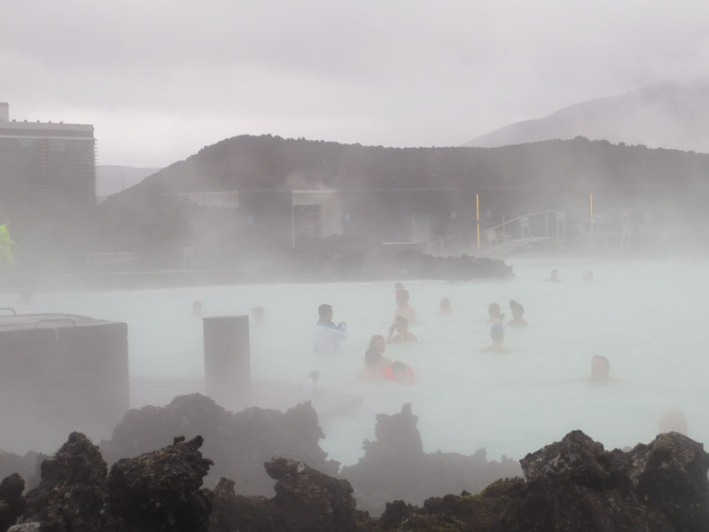 Le tour de la péninsule de Reykjanes nous amène au champ géothermique de Seltun et bien évidemment au Blue Lagon attraction numéro 1 islandaise! Ses eaux calmes et turquoises font un contraste saisissant avec le noir profond de la roche volcanique du site. Puisée à 1800m de profondeur, l'eau est légèrement salée et sa température s'élève à 240°C. Riche en algues, silice, calcaire et soufre, elle est d'un bleu turquoise laiteux. C'est en 1976 qu'il a été décidé de répandre le surplus d'eau de la centrale géothermique de Svartsengi et en 1987 les premières infrastructures furent construites.