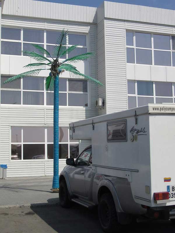 Quand de l'ombre est réclamée au chauffeur, heureusement qu'il y a un palmier...en plastique!