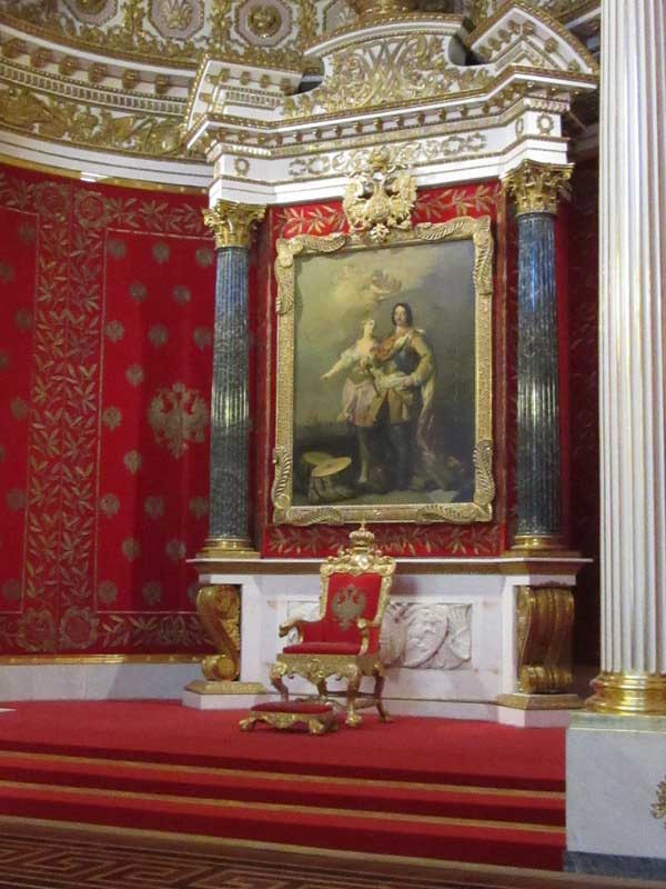 Quittant la place nous rejoignons la Pespective Nevski, artère la plus célèbre de St-Pétersbourg où se dresse la majestueuse cathédrale N-D de Kazan, avec son dôme de 90m de haut et ses 96 colonnes.