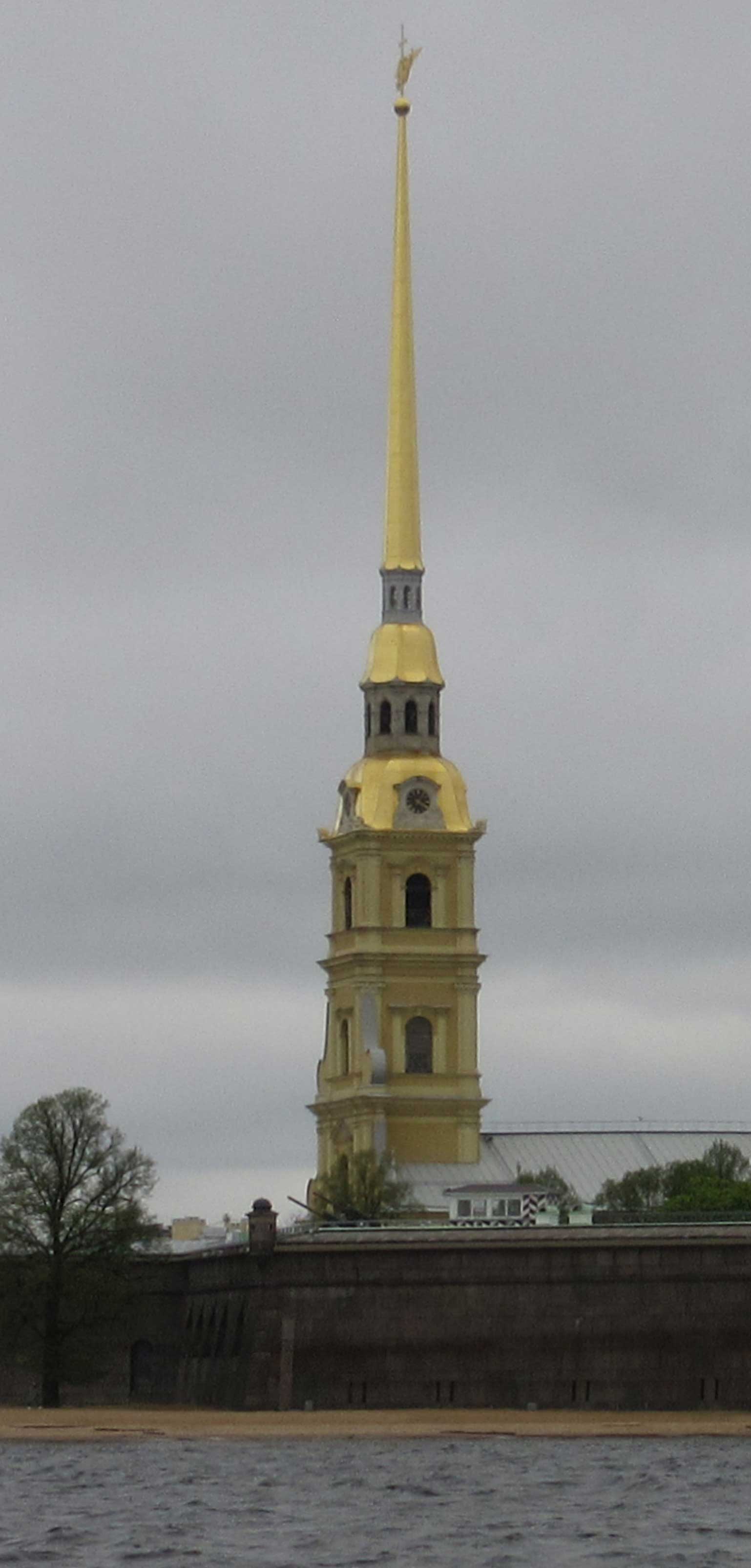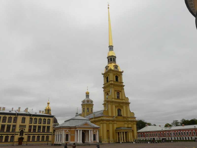 Après être passé à la pointe de l'île Vassilievski célèbre pour la "Strelka" et ses colonnes de granit rouge, nous longeons la Forteresse Pierre et Paul construite par Pierre Le Grand de 1700 à 1721. Elle servit de prison sous les tsars, les bolchevicks jusqu'au KGB.