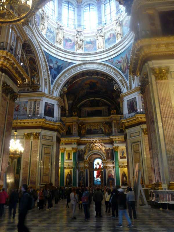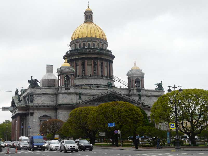 Puis la cathédrale St-Isaac, 3ème plus grande cathédrale d'Europe. Elle fut édifiée de 1818 à 1858. De sa coupole beau panorama sur la ville.